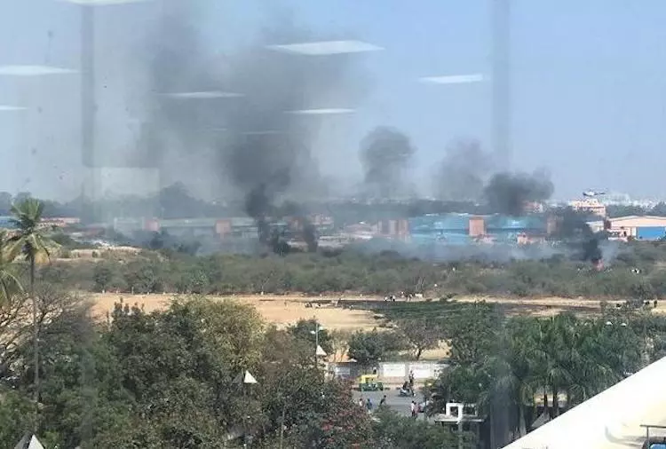 യെഹലങ്ക ന്യൂടൗണ് പ്രദേശത്തെ ഐ.എസ്.ആര്.ഒ ലേ ഔട്ടിലാണ് വിമാനത്തിന്റെ അവശിഷ്ടങ്ങള് വീണത്. അവശിഷ്ടങ്ങള് പതിച്ച് ഒരു പ്രദേശവാസിക്കും പരിക്കേറ്റു. അപകടത്തെക്കുറിച്ച് അറിഞ്ഞെന്നും എന്നാല് ഇപ്പോള് കൂടുതല് പ്രതികരിക്കാനാകില്ലെന്നും പ്രതിരോധ മന്ത്രി നിര്മല സീതാരാമന് പറഞ്ഞു. നാളെ തുടങ്ങി 24ന് അവസാനിക്കുന്ന തരത്തിലാണ് പ്രദര്ശനം നിശ്ചയിച്ചിരുന്നത്.