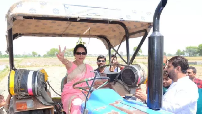 കൂളിംഗ് ഗ്ലാസ് വച്ച് സ്വർണ നിറമുള്ള സാരി ധരിച്ച് ട്രാക്ടര് ഓടിക്കുന്ന യുവതി. സിനിമയല്ല സിനിമാ നടിയുടെ തെരഞ്ഞെടുപ്പ് പ്രചാരണമാണിത്. പ്രചാരണ ശൈലികൊണ്ട് ജനശ്രദ്ധ നേടുന്നത് എന്.ഡി.എയുടെ സ്ഥാനാര്ഥികളില് ഒരാളായ ഹേമമാലിനിയാണ്.