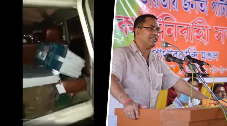 |രണ്ടാംഘട്ട വോട്ടെടുപ്പ് നടന്ന വ്യാഴാഴ്ച രാത്രിയാണ് പാതാർകണ്ടി എം.എൽ.എ കൃഷ്ണേന്ദു പാലിന്റെ വാഹനത്തിൽ നിന്ന് വോട്ടിങ് മെഷീൻ കണ്ടെടുത്തത്