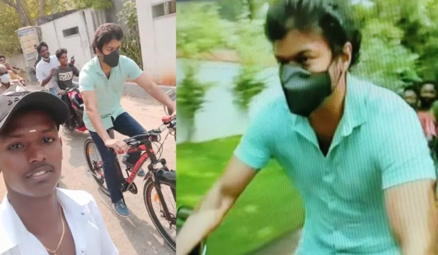 സൈക്കളില് വോട്ട് ചെയ്യാനെത്തി തമിഴ് നടന് വിജയ്. ഇന്ധനവില വര്ദ്ധനവില് പ്രതിഷേധിച്ചാണ് വിജയ് സൈക്കിളില് വോട്ട് ചെയ്യാനെത്തിയത്. താരത്തെ കണ്ടതും ആരാധകരുടെ നിയന്ത്രണം വിട്ടു. പിന്നീട് പോലീസ് ഇടപെട്ടാണ് ജനക്കൂട്ടത്തെ നിയന്ത്രിച്ചത്.