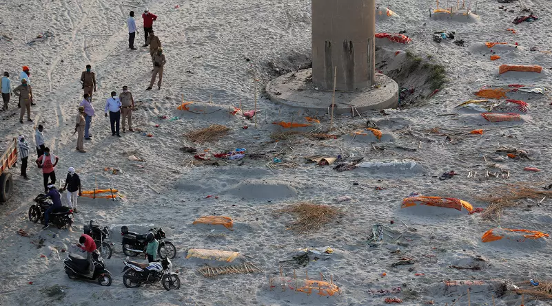പ്രയാഗ്രാജില് ഗംഗാതീരത്ത് മൃതദേഹങ്ങള് മണലില് കുഴിച്ചിട്ട നിലയില്