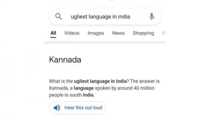 ഇന്ത്യയിലെ ഏറ്റവും മോശം ഭാഷയേതെന്ന ചോദ്യത്തിന് കന്നടയെന്ന് ഉത്തരം നല്കി ഗൂഗിൾ സെർച്ച് എഞ്ചിന്. ഗൂഗിളിന്റെ ഉത്തരത്തിനെതിരെ ട്വിറ്ററിലൂടെ വ്യാപക പ്രതിഷേധം ഉയർന്നതോടെ വിഷയത്തെ നിയമപരമായി നേരിടാനൊരുങ്ങുകയാണ് കര്ണാടക സര്ക്കാര്.
