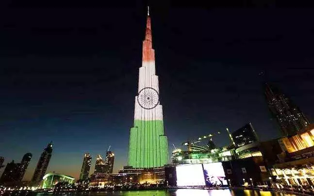 |'സ്റ്റേ സ്ട്രോങ് ഇന്ത്യ' എന്ന ഹാഷ് ടാഗോടെ ത്രിവർണത്തിലായിരുന്നു ഞായറാഴ്ച്ച രാത്രി വിഖ്യാതമായ ബുർജ് ഖലീഫ പ്രത്യക്ഷപ്പെട്ടത്.