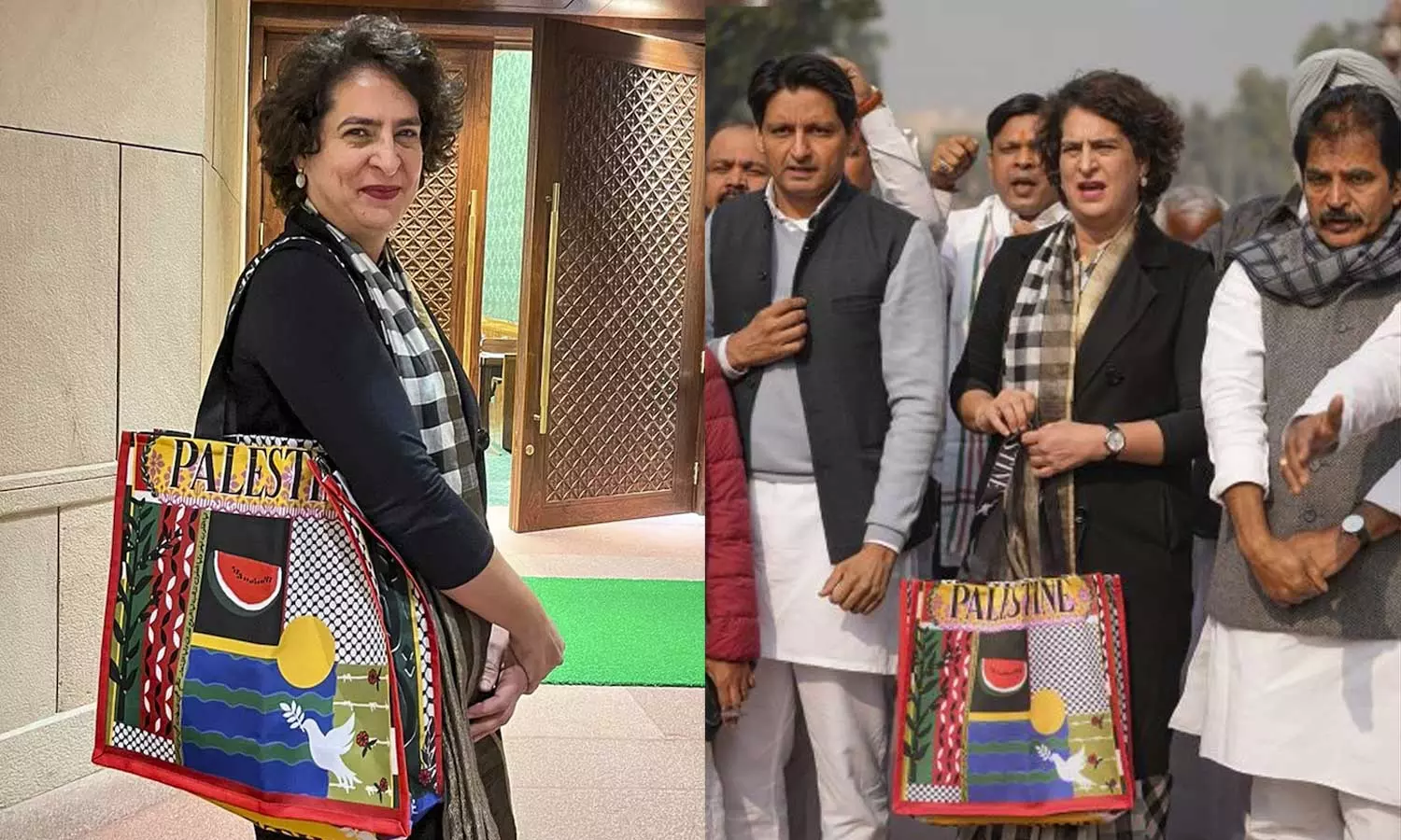 ഇന്നലെയാണ് ഫലസ്തീൻ ഐക്യദാർഢ്യത്തിന്റെ ഭാഗമായി വ്യാപകമായി പ്രചാരത്തിലുള്ള ചിഹ്നങ്ങൾ അടങ്ങിയ ബാഗുമായി പ്രിയങ്ക പാർലമെന്റിൽ എത്തിയത്. തണ്ണീർമത്തൻ, കഫിയ്യ, ഒലീവ് ചില്ലകൾ ഉൾപ്പെടെ ഫലസ്തീൻ വിമോചന പോരാട്ടത്തിന്റെ പ്രതീകങ്ങളെല്ലാം ആലേഖനം ചെയ്ത ബാഗിൽ ഫലസ്തീൻ എന്ന് ഇംഗ്ലീഷിൽ പ്രിന്റ് ചെയ്തിട്ടുമുണ്ട്. കഴിഞ്ഞ ദിവസം ഡൽഹിയിലെ എംബസിയിൽ ഫലസ്തീൻ നയതന്ത്ര പ്രതിനിധി ആബിദ് അൽറാസിഖ് അബൂ ജാസറുമായി പ്രിയങ്ക കൂടിക്കാഴ്ച നടത്തുകയും ചെയ്തിരുന്നു. തൊട്ടടുത്ത ദിവസമാണ് പാർലമെന്റിലേക്ക് ഫലസ്തീൻ ബാഗും കൈയിൽ തൂക്കിയുള്ള വരവ്.