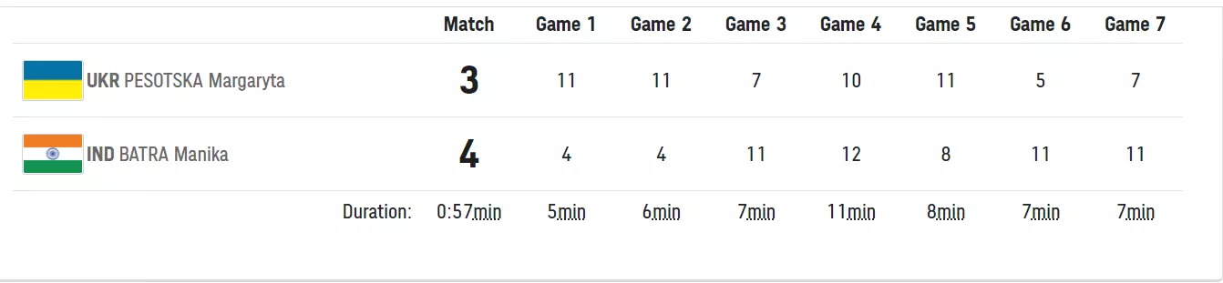 |ഉക്രയ്ന്റെ മാർഗർത്യ പെസോസ്കയെ 4-3നാണ് താരം കീഴ്പ്പെടുത്തിയത്