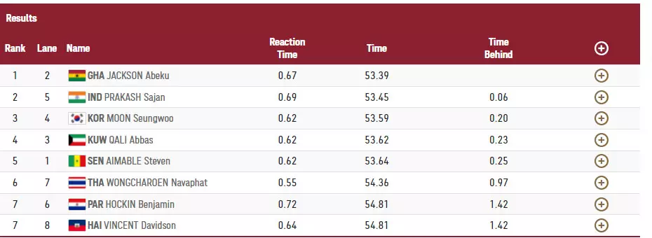 53.45 സെക്കൻഡിലാണ് സജൻ ഹീറ്റ്സ് പൂർത്തിയാക്കിയത്.
