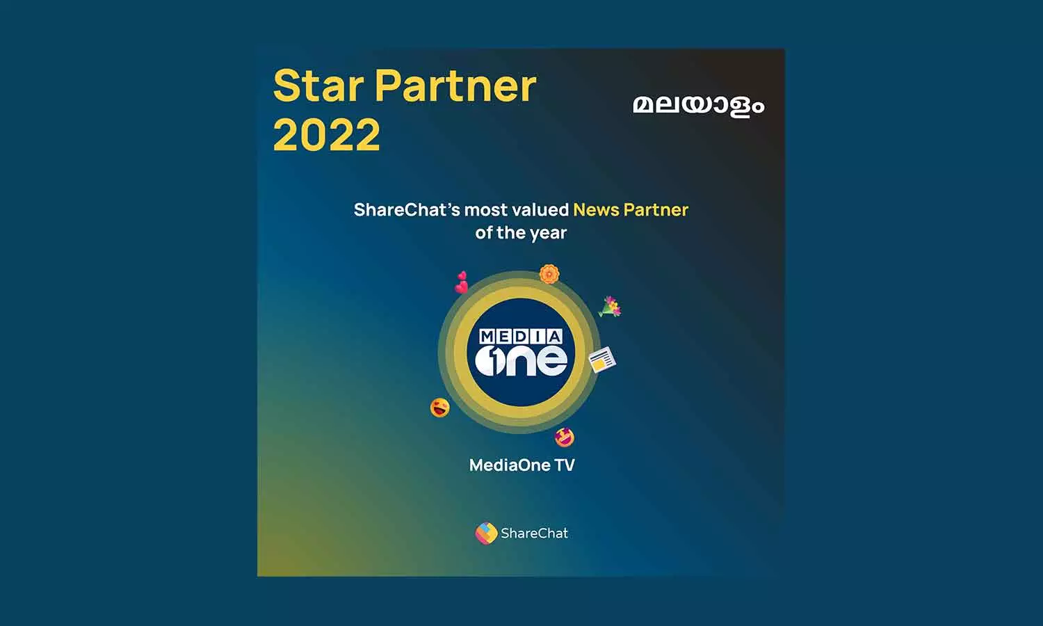 പ്രമുഖ സാമൂഹ്യ മാധ്യമമായ ഷെയർചാറ്റിന്റെ മലയാളത്തിലെ 'സ്റ്റാർ പാർട്ണർ അവാർഡ്' മീഡിയവണ്ണിന്. 2022-ൽ ഷെയർചാറ്റിൽ ഏറ്റവും മികച്ച പ്രകടനം കാഴ്ചവെച്ചതിനുള്ള 'മോസ്റ്റ് വാല്യൂഡ് ന്യൂസ് പാർട്ണർ ഓഫ് ദി ഇയർ' പുരസ്കാരത്തിനാണ് മീഡിയവണ്ണിനെ തെരഞ്ഞെടുത്തിരിക്കുന്നത്. മീഡിയവൺ പ്ലാറ്റ്ഫോമുകളിലൂടെ ലക്ഷക്കണക്കിന് പ്രേക്ഷകർക്ക് വാർത്തകളും മറ്റു വിശേഷങ്ങളും അറിയാൻ കഴിഞ്ഞുവെന്നും, ആധികാരികവും ആകർഷകവുമാണ് മീഡിയവണ്ണിന്റെ ഉള്ളടക്കം എന്നും ഷെയർചാറ്റ് അധികൃതർ പറഞ്ഞു.