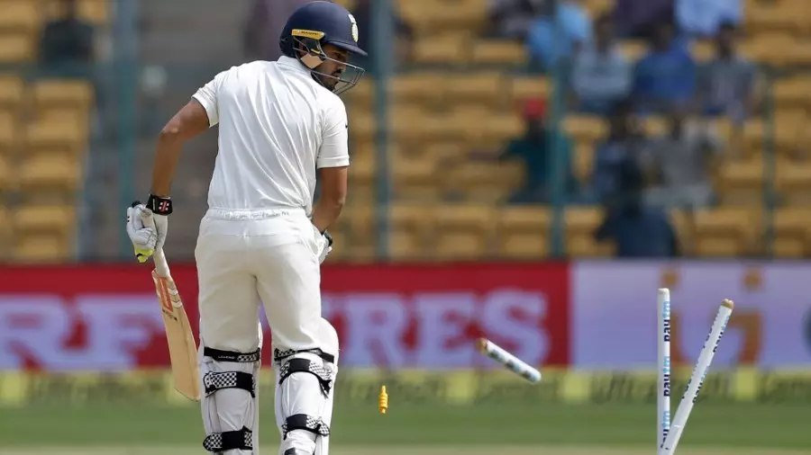മികച്ച സ്കോര് പടുത്തുയര്ത്തി കംഗാരുക്കളെ പ്രതിരോധത്തിലാക്കുക എന്ന ലക്ഷ്യത്തോടെയാണ് ഇന്ത്യ ഇന്ന് ബാറ്റിങ് പുനരാരംഭിച്ചത്. രഹാനെയിലും പൂജാരയിലും ലക്ഷമണിന്റെയും ദ്രാവിഡിന്റെയും പ്രതിരൂപങ്ങളെ കണ്ട് ഇന്ത്യന് ആരാധകര് പ്രതീക്ഷയുടെ കോട്ട കെട്ടി. എന്നാല് കേവലം ഒന്പത് പന്തുകള് കൊണ്ട് ഓസീസ് ബൌളര്മാര് ആ സ്വപ്നങ്ങളെ തകിടം മറിച്ചു. അജിങ്ക്യ രഹാനെയെ വിക്കറ്റിന് മുന്നില് കുടുക്കി സ്റ്റാര്ക്കാണ് ഇന്ത്യന് തകര്ച്ചക്ക് തുടക്കം കുറിച്ചത്. അന്പയര് നോട്ടൌട്ട് വിധിച്ചെങ്കിലും റിവ്യൂവിലൂടെ ഓസീസ് വിധി തങ്ങള്ക്ക് അനുകൂലമാക്കുകയായിരുന്നു.