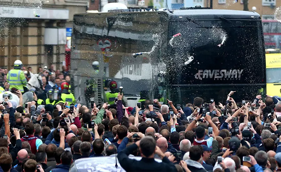വെസ്റ്റ്ഹാം ആരാധകര് മാഞ്ചസ്റ്റര് യുണൈറ്റഡിന്റെ ടീം ബസ് ആക്രമിച്ചു. വെസ്റ്റ്ഹാമുമായുള്ള മത്സരത്തിന് യുണൈറ്റഡ് സ്റ്റേഡിയത്തിലെത്തിയപ്പോഴാണ് സംഭവം. മാഞ്ചസ്റ്ററിന്റെ ടീംബസ് വന്നപ്പോള് അക്രമാസക്തരായ ചില ആരാധകര് ബസിന് നേരെ കുപ്പികള് വലിച്ചെറിയുകയായിരുന്നു. മാഞ്ചസ്റ്ററിന്റെ കോച്ച് ലൂയി വാന്ഗാലിനെയും ആരാധകര് കൈയേറ്റം ചെയ്തു. ആള്ക്കൂട്ടത്തെ കഷ്ടപ്പെട്ടാണ് പോലീസ് നിയന്ത്രണവിധേയമാക്കിയത്. ഇതിനെ തുടര്ന്ന് മത്സരം 45 മിനിറ്റോളം വൈകിയാണ് ആരംഭിച്ചത്.