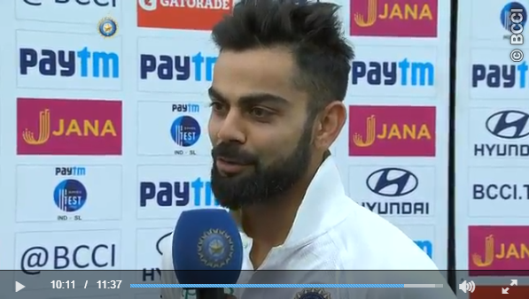 |ശ്രീലങ്കക്കെതിരായ ടെസ്റ്റ് പരമ്പരയുടെ അവസാന ടെസ്റ്റിനു ശേഷം നടന്ന പുരസ്ക്കാര ദാന ചടങ്ങിനിടെയാണ് കോഹ്ലി ഇക്കാര്യം തുറന്നു പറഞ്ഞത്.