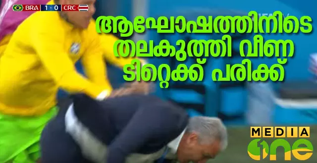 കോസ്റ്ററിക്കയുമായുള്ള മത്സരത്തില് ഇഞ്ചുറി ടൈമില് കുട്ടിഞ്ഞോ ഗോള് നേടിയതിന് പിന്നാലെയുള്ള ആഘോഷത്തിലാണ് ടിറ്റെക്ക് പരിക്ക് പറ്റിയത്. ടീമിലെ പകരക്കാരനായ ഗോളി എഡേഴ്സണ് മെറേയ്സ് തട്ടിയാണ് ടിറ്റെ തലകുത്തിവീണത്.