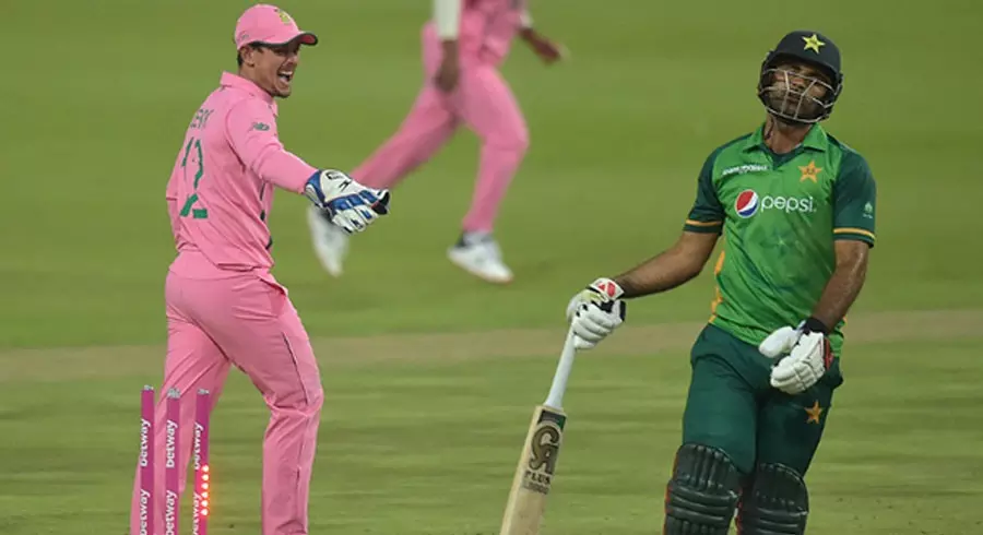 ലുംഗി എന്ങ്കിഡി എറിഞ്ഞ അവസാന ഓവറിന്റെ ആദ്യ പന്ത് നേരിട്ട ഫഖര് ആദ്യ പന്തില് രണ്ടാം റണ്ണിന് ശ്രമിക്കുമ്പോഴാണ് റണ്ണൗട്ടായത്. ആദ്യ റണ് പൂര്ത്തിയാക്കിയ പാക് താരത്തിന് ക്രീസില് തിരിച്ചെത്താനുള്ള അവസരമുണ്ടായിരുന്നു. രണ്ടാം റണ്സ് പൂര്ത്തിയാക്കുന്നതിനിടെ സ്റ്റംപിനടുത്തേക്ക് ഓടിയെത്തിയ ഡി കോക്ക് ബൗളിംഗ് എന്ഡിലേക്ക് കൈ ചൂണ്ടി. പന്ത് ബൗളിംഗ് എന്ഡിലേക്കാണ് വരുന്നതെന്ന് ഫഖറിനെ തെറ്റിദ്ധരിപ്പിക്കാന് വേണ്ടിയായിരുന്നു അത്. ഡി കോക്കിന്റെ തന്ത്രത്തില് വീണ് ഫഖറാകട്ടെ പിന്നോട്ട് നോക്കി റണ്ണിംഗ് പതുക്കെയാക്കി. എന്നാല് ലോംഗ് ഓഫില് നിന്നുള്ള എയ്ഡന് മാര്ക്രമിന്റെ ത്രോ നേരെ വന്നത് ബാറ്റിംഗ് എന്ഡിലേക്കായിരുന്നു. നേരിട്ട് പന്ത് സ്റ്റംപില് പതിക്കുകയും ചെയ്തു. ഇതോടെ ഫഖറിന് അര്ഹമായ ഇരട്ട സെഞ്ചുറി നഷ്ടമായി.