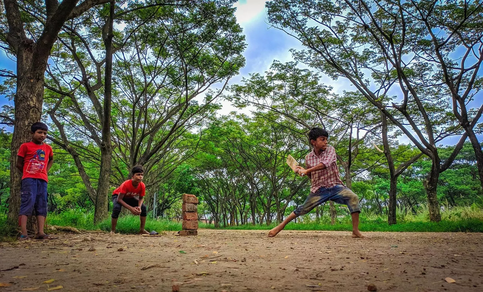 |ചുറ്റും മരങ്ങള് നിറഞ്ഞ കളിസ്ഥലത്തിന് നടുവില് നിന്ന് ബാറ്റുചെയ്യുന്ന കുട്ടിയാണ് ചിത്രത്തിലെ ഹൈലൈറ്റ്. കല്ലുകള് അടുക്കിവെച്ചാണ് സ്റ്റമ്പ് ഒരുക്കിയിരിക്കുന്നത്.