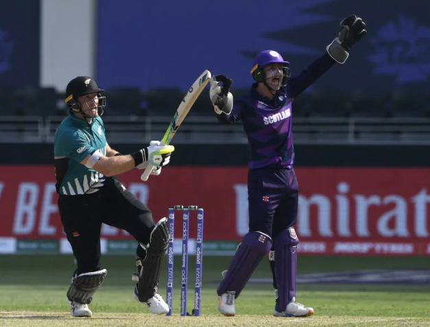 ''ഇന്ത്യ മുഴുവൻ നിനക്ക് പിന്തുണയുമായുണ്ടെന്നും നന്നായി പന്തെറിഞ്ഞോയെന്നും ടീമിലെ ബൗളറോട് സ്കോട്ലാൻഡ് വിക്കറ്റ്കീപ്പർ. സ്റ്റമ്പിലെ മൈക്കാണ് സ്കോട്ട്ലാൻഡ് വിക്കറ്റ് കീപ്പർ മാത്യൂ ക്രോസ് സഹതാരമായ ബൗളർ ക്രിസ് ഗ്രീവ്സിനോട് പറഞ്ഞ രസകരമായ കമൻറ് ഒപ്പിയെടുത്തത്. ടി 20 ലോകകപ്പിൽ ന്യൂസിലാൻഡിനെതിരെ നടന്ന മത്സരത്തിനിടെയാണ് സംഭവം. ബുധനാഴ്ച ദുബായ് അന്താരാഷ്ട്ര സ്റ്റേഡിയത്തിൽ നടന്ന മത്സരത്തിൽ ന്യൂസിലാൻഡ് കഷ്ടിച്ച് രക്ഷപ്പെടുകയായിരുന്നു. ന്യുസിലാൻഡ് പരാജയപ്പെട്ടാൽ ഇന്ത്യക്ക് സെമിയിലെത്താൻ സാധ്യത വർധിക്കുമായിരുന്നു. ഈ സാഹചര്യത്തിലാണ് ക്രോസിന്റെ കമൻറ്.