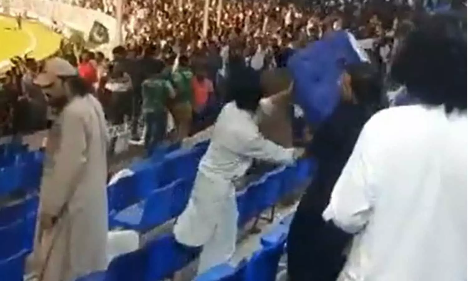 പാകിസ്താന്റെ ആസിഫ് അലി അഫ്ഗാൻ താരം ഫരീദ് അഹമ്മദിനെ ബാറ്റെടുത്ത് തല്ലാനൊരുങ്ങിയിരുന്നു. അമ്പയർമാരും സഹകളിക്കാരും ഇടപെട്ടാണ് ഇവരെ പിടിച്ചുമാറ്റിയത്. ഇതിന് പിന്നാലെയാണ് മത്സര ശേഷം അഫ്ഗാനിസ്താൻ കസേര തല്ലിത്തകർത്തത്. പിന്നാലെയാണ് ഇരു ആരാധകരും തമ്മിൽ വാക്കേറ്റവും ഉന്തും തല്ലുമുണ്ടായതും. മത്സരത്തിൽ ഒരു വിക്കറ്റിന് വിജയിച്ചതിന്റെ എല്ലാ ആഘോഷവും പാക് ക്യാമ്പിൽ ഉണ്ടായിരുന്നു.