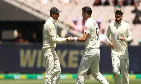 ബോക്സിങ് ഡേയിൽ തങ്ങളെ എറിഞ്ഞിട്ട ഓസ്ട്രേലിയയെ അതേ നാണയത്തിൽ തിരിച്ചടിച്ചെങ്കിലും ആഷസ് മൂന്നാം ടെസ്റ്റിന്റെ രണ്ടാം ഇന്നിംഗ്സിൽ ഇംഗ്ലണ്ടിന് വീണ്ടും ബാറ്റിംഗ് തകർച്ച. നാല് വിക്കറ്റ് നേടിയ പേസ് ബൗളർ ജെയിംസ് ആന്ഡേഴ്സന്റെ മികവിൽ 267 റൺസിന് ഓസ്ട്രേലിയൻ ബാറ്റർമാരെ മുഴുവൻ കൂടാരം കയറ്റിയ ശേഷം രണ്ടാം ഇന്നിംഗ്സിൽ ബാറ്റിംഗ് ആരംഭിച്ച ഇംഗ്ലണ്ടിന് 31 റൺെസടുക്കുന്നതിനിടെ നാല് വിക്കറ്റ് നഷ്ടമായി.രണ്ടാം ദിനം കളിയവസാനിക്കുമ്പോള് 12 റൺസുമായി ക്യപ്റ്റൻ ജോ റൂട്ടും രണ്ട് റൺസുമായി ബെൻ സ്റ്റോക്സുമാണ് ക്രീസിൽ.