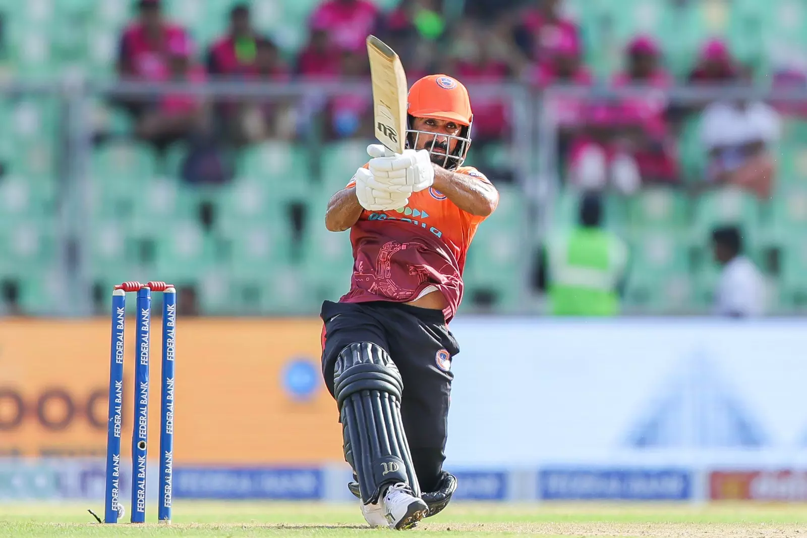 തുടക്കത്തിലെ തകർച്ചയിൽ നിന്ന് കരകയറ്റിയ അജ്നാസിൻ്റെ ചെറുത്തുനില്പിനൊടുവിൽ സൽമാൻ നിസാറിൻ്റെ സംഹാരതാണ്ഡവം. ആദ്യം ബാറ്റ് ചെയ്ത കാലിക്കറ്റിൻ്റെ ഇന്നിങ്സിനെ ഇങ്ങനെ ചുരുക്കിയെഴുതാം. കെസിഎൽ ചരിത്രത്തിലെ ഏറ്റവും മികച്ച ഇന്നിങ്സുകളിലൊന്ന്. അതിനായിരുന്നു സൽമാൻ നിസാറിലൂടെ ഗ്രീൻഫീൽഡ് സ്റ്റേഡിയം സാക്ഷ്യം വഹിച്ചത്. കഴിഞ്ഞ കളിയിലെപ്പോലെ മോശം തുടക്കമായിരുന്നു റോയൽസിനെതിരെയും കാലിക്കറ്റിൻ്റേത്. ഓപ്പണർമാരായ പ്രീതിഷ് പവൻ ഏഴും രോഹൻ കുന്നുമ്മൽ 11ഉം റൺസെടുത്ത് പുറത്തായി. കഴിഞ്ഞ മല്സരങ്ങളിൽ മികച്ച ഇന്നിങ്സ് കാഴ്ച വച്ച അഖിൽ സ്കറിയയും സച്ചിൻ സുരേഷും കൂടി ചെറിയ സ്കോറുകളിൽ പുറത്തായതോടെ നാല് വിക്കറ്റിന് 76 റൺസെന്ന നിലയിലായിരുന്നു കാലിക്കറ്റ് ഗ്ലോബ് സ്റ്റാർസ്.