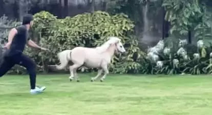 വെളുത്ത കുഞ്ഞന് കുതിരക്ക് പിന്നില് പാഞ്ഞ് ധോണി; ക്യാപ്റ്റന് കൂളിന്റെ ഓട്ടം സോഷ്യല് മീഡിയയില് വൈറല്