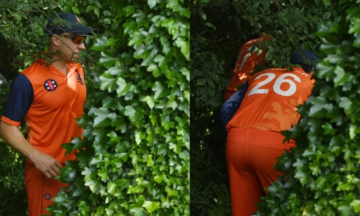 മത്സരത്തിന്റെ ഒമ്പതാം ഓവറിൽ പീറ്റർ സീലർ എറിഞ്ഞ പന്ത് ഡേവിഡ് മാലൻ സിക്സറടിച്ച് ഗ്രൗണ്ടിന് പുറത്തേക്ക് എത്തിക്കുകയായിരുന്നു. സ്റ്റേഡിയത്തിന് പുറത്തെ മരങ്ങളിൽ തട്ടിയാണ് പന്ത് നിലത്തുവീണത്. പന്ത് തപ്പിയ ഗ്രൗണ്ട് സ്റ്റാഫുകൾക്ക് പന്ത് കണ്ടെത്തുവാനും സാധിച്ചില്ല. ഇതിനു പിന്നാലെയാണ് നെതർലാന്റ് താരങ്ങളും പന്തു തിരയാൻ ഇറങ്ങിയത്. നെതർലാന്റ് താരങ്ങൾ പന്ത് തിരയുന്ന കാഴ്ച നാട്ടിൻ പുറത്തെ 'കണ്ടം ക്രിക്കറ്റിനെ' ഓർമ്മപ്പെടുത്തുന്നതായിരുന്നു. കാട്ടിലും മരങ്ങൾക്കിടയിലും നെതർലാന്റ് താരങ്ങൾ തിരച്ചിലോട് തിരച്ചിൽ എന്നു പറഞ്ഞാൽ മതി. തിരച്ചിലിനൊടുവിൽ പന്ത് കിട്ടി. പിന്നാലെ ഇതിന്റെ വിഡിയോ ദൃശ്യങ്ങൾ വൈറലാവുകയുമുണ്ടായി. നെതർലൻഡ് താരം തന്നെ പൊന്തക്കാട്ടിൽ നിന്ന് പന്ത് കണ്ടെത്തുകയും മത്സരം പുനരാംഭിക്കുകയും ചെയ്യുകയായിരുന്നു.