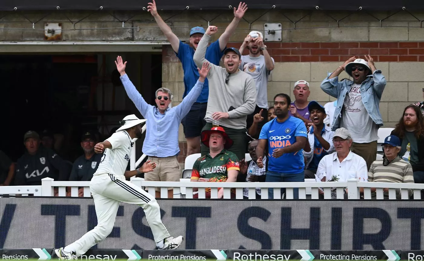 ഒടുവിൽ ഇന്ത്യക്ക് സമാധാനത്തിന്റെ ദൂതുമായി പ്രസിദ് കൃഷ്ണയെത്തി. ബ്രൂക്കിന് മുന്നിൽ നിരായുധനായി നിന്ന പ്രസിദിന്റെ കംബാക്ക്. ജേക്കബ് ബെതൽ ബൗൾഡ്. പിന്നാലെ സിറാജും റൂട്ടിനെ വിറപ്പിച്ച ഏതാനും പന്തുകളെറിഞ്ഞു. അതിനിടയിലാണ് നാലാം ദിവസം ഇന്ത്യ ഏറ്റവും സന്തോഷിച്ച നിമിഷമെത്തുന്നത്. പ്രസിദിന്റെ പന്തിൽ ജുറേലിന് ക്യാച്ച് സമ്മാനിച്ച് റൂട്ട് മടങ്ങി. അതോടെ ഗ്യാലറിയിലെ ഇന്ത്യൻ കാണികളുയർന്നു. തൊണ്ടുപൊട്ടുച്ചത്തിൽ അവർ ഇന്ത്യക്കായി ആർത്തുവിളിച്ചു.