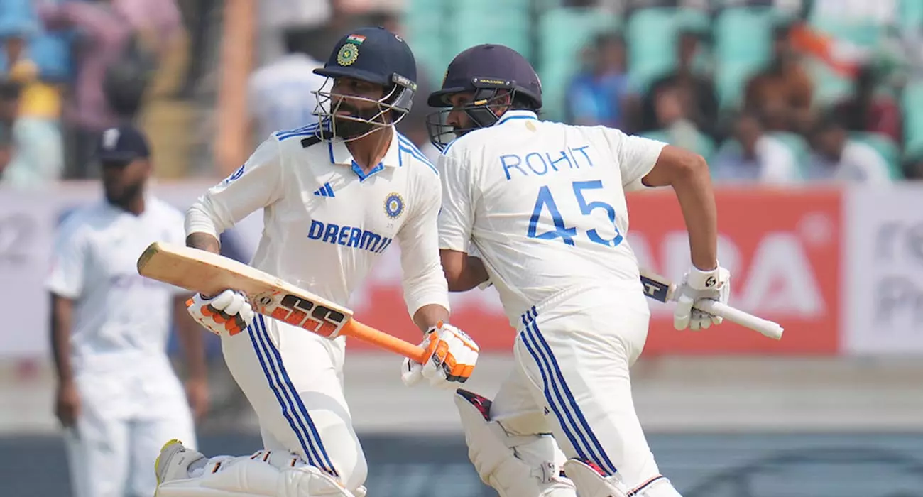 നേരത്തെ ടോസ് നേടി ബാറ്റിങ് തിരിഞ്ഞെടുത്ത ഇന്ത്യയുടെ തുടക്കം മോശമായിരുന്നു. വിശാഖപട്ടണം ടെസ്റ്റിൽ സെഞ്ചുറി നേടിയ യശ്വസി ജെയ്സ്വാൾ 10 റൺസെടുത്ത് പുറത്തായി. തുടർന്ന് ക്രീസിലെത്തിയ ശുഭ്മാൻ ഗിൽ വന്നതും പോയതും ഒരുമിച്ചായിരുന്നു. പൂജ്യത്തിനാണ് താരം മടങ്ങിയത്. നാലാമതായി ഇറങ്ങിയ രജത് പടിദാർ(5) കൂടി ഔട്ടായതോടെ ഇന്ത്യ 33-3 എന്നനിലയിൽ വൻതകർച്ച നേരിട്ടു. എന്നാൽ നാലാം വിക്കറ്റിൽ കൂട്ടുചേർന്ന രോഹിത്-ജഡേജ കൂട്ടുകെട്ട് ഇന്ത്യയെ കരകയറ്റുകയായിരുന്നു. ഇതിനിടെ കരിയറിലെ പതിനൊന്നാം ടെസ്റ്റ് സെഞ്ചുറിയും ഇന്ത്യൻ ക്യാപ്റ്റൻ കുറിച്ചു.