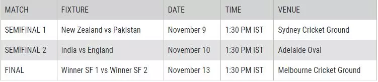 ഗ്രൂപ്പ് ഘട്ടത്തിലെ അഞ്ചു കളിയിൽ നാലു ജയവും ഒരു തോൽവിയും സഹിതം എട്ടു പോയിന്റുമായാണ് ഇന്ത്യ സെമിയിലെത്തുന്നത്. ഗ്രൂപ്പ് രണ്ടിലെ ചാമ്പ്യന്മാരാണ് ടീം ഇന്ത്യ. അഞ്ചു കളിയിൽ മൂന്നു ജയവും രണ്ടു തോൽവിയുമായി ആറു പോയിന്റ് നേടിയ പാകിസ്താൻ ഗ്രൂപ്പിലെ രണ്ടാം സ്ഥാനക്കാരായി സെമിയിലെത്തി. നെതർലാൻഡ്സ് ദക്ഷിണാഫ്രിക്കയെ അട്ടിമറിച്ചതാണ് പാകിസ്താന് സെമിയിലേക്ക് അപ്രതീക്ഷിത എന്ട്രി നല്കിയത്.