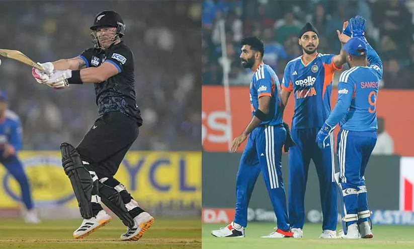 വിശാഖപട്ടണത്ത് നടന്ന മത്സരത്തിൽ ടോസ് നഷ്ടപ്പെട്ട് ബാറ്റിങ്ങിനിറങ്ങിയ ന്യൂസിലൻഡ് തകർപ്പൻ ബാറ്റിങ് പ്രകടനമാണ് കാഴ്ചവെച്ചത്. ഒമ്പത് ഓവറിൽ വിക്കറ്റ് നഷ്ടപെടാതെ 100 റൺസ് എന്ന നിലയിൽ വരെ അവരെത്തി. പിന്നാലെ വിക്കറ്റുകൾ നഷ്ടപ്പെട്ടെങ്കിലും ഓപണർ ടിം സെയ്ഫെർട്ടിന്റെ അർധ സെഞ്ച്വറിയും 39 റൺസുമായി പുറത്തകാതെ നിന്ന ഡാരിൽ മിച്ചലിന്റെ ബാറ്റിങ്ങും കവീസിനെ മികച്ച സ്കോറിലെത്തിച്ചു. 20 ഓവറിൽ ഏഴ് വിക്കറ്റ് നഷ്ടത്തിൽ 215 റൺസാണ് കിവീസ് സ്കോർ ചെയ്തത്.