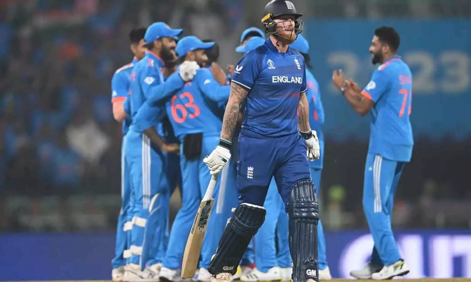 ലക്നൗ: ഇന്ത്യയെ ചെറിയ സ്കോറിന് ഒതുക്കി എളുപ്പത്തിൽ ജയിച്ചുകയറാമെന്ന ഇംഗ്ലണ്ടിന്റെ കണക്ക് കൂട്ടലുകൾക്ക് പ്രഹരമേൽപ്പിച്ച് ഇന്ത്യൻ ബൗളർമാർ. 100 റൺസിനായിരുന്നു ഇന്ത്യയുടെ വിജയം. തോൽവിയോടെ ഇംഗ്ലണ്ട് ലോകകപ്പിൽ നിന്ന് പുറത്തായി. കഴിഞ്ഞ തവണത്തെ ചാമ്പ്യന്മാരാണ് ഇവ്വിതം തകർന്നത്. ജയത്തോടെ ഇന്ത്യയുടെ സെമി ഉറപ്പായി.