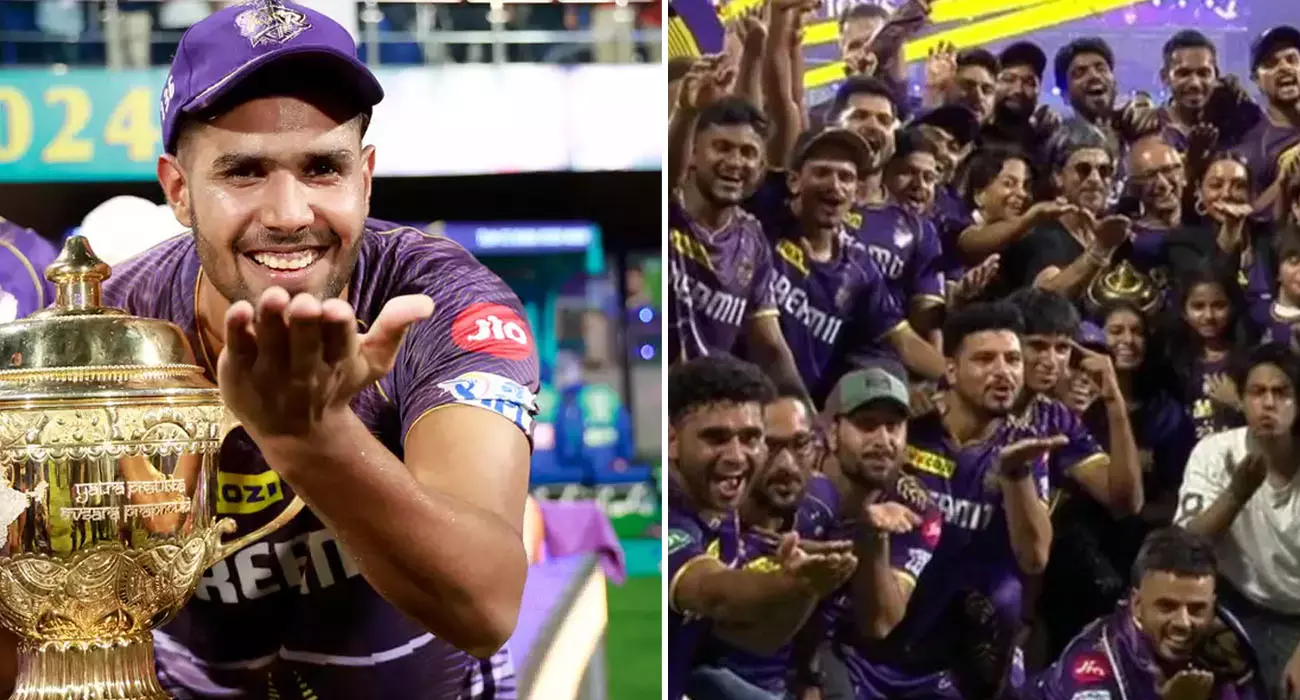 |ഹർഷിത് റാണക്കെതിരെ നടപടി സ്വീകരിച്ച ഐ.പി.എൽ അച്ചടക്കസമിതിക്കുള്ള മറുപടി കൂടിയാണ് കിരീടാഘോഷത്തിൽ കൊൽക്കത്ത നൽകിയത്.
