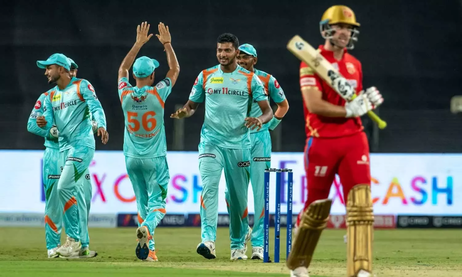 ടോസ് നേടി പഞ്ചാബ് കിങ്സ് നായകൻ മായങ്ക് അഗർവാൾ ലഖ്നൗവിനെ ബാറ്റിങ്ങിനയക്കുകയായിരുന്നു. മായങ്കിന്റെ കണക്കുകൂട്ടൽ ശരിവയ്ക്കുന്ന തരത്തിൽ പവർപ്ലേയിലെ മൂന്നാം ഓവറിൽ തന്നെ ലഖ്നൗ നായകൻ കെ.എൽ രാഹുലിനെ വിക്കറ്റ് കീപ്പർ ജിതേഷ് ശർമയുടെ കൈയിലെത്തിച്ചു. എന്നാൽ, മൂന്നാമനായെത്തിയ ദീപക് ഹൂഡയുമായി ചേർന്ന് ഓപണർ ക്വിന്റൻ ഡീകോക്ക് പഞ്ചാബ് ബൗളർമാരെ തകർത്തടിച്ചു. പുറത്താകുമ്പോൾ 37 പന്തിൽ നാല് ബൗണ്ടറിയും രണ്ട് സിക്സും സഹിതം 46 റൺസ് നേടി അർധശതകത്തിന് നാലു റൺസ് മാത്രം അകലെ താരം മടങ്ങുകയായിരുന്നു.