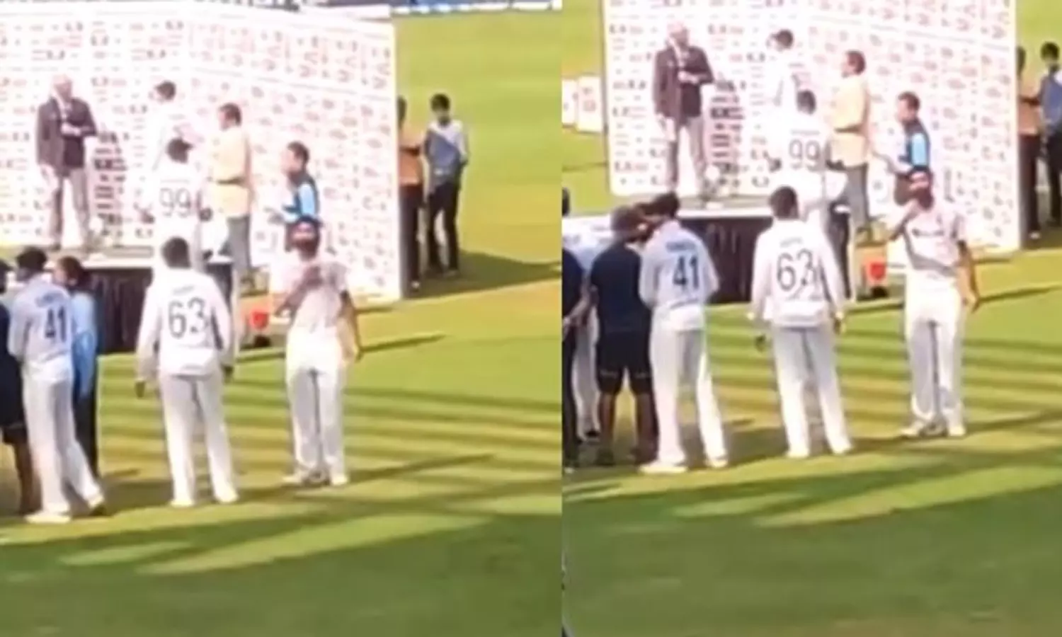 ന്യൂസിലൻഡിനെതിരായ രണ്ടാം ക്രിക്കറ്റ് ടെസ്റ്റിൽ ഇന്ത്യൻ ടീം വിജയമാഘോഷിക്കുന്നതിനിടെ ഐപിഎല് ടീമായ റോയൽ ചാലഞ്ചേഴ്സ് ബാംഗ്ലൂരിന് വേണ്ടി ആര്പ്പ് വിളിച്ച ആരാധകനെ തിരുത്തി ഇന്ത്യയുടെ മുഹമ്മദ് സിറാജ്. മുംബൈ ടെസ്റ്റിലെ തകര്പ്പന് ജയത്തിന് ശേഷം നടന്ന സമ്മാനദാന ചടങ്ങിലായിരുന്നു ടീം ഇന്ത്യ.