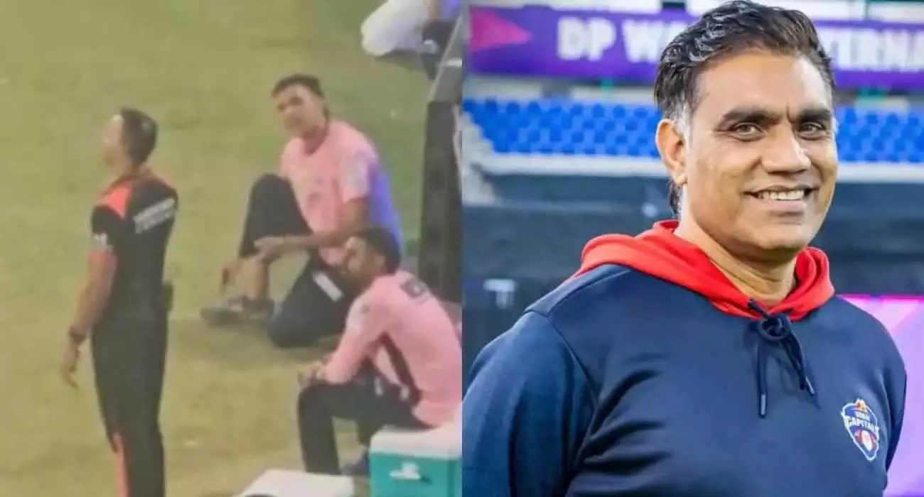 Munaf Patel had a heated exchange with the 4th umpire during the #DCvRR match at the Arun Jaitley Stadium, Delhi after the umpire denied sending a player to enter the ground to convey his message.#DCvsRR #IPL2025 pic.twitter.com/hHv0tNAUvd