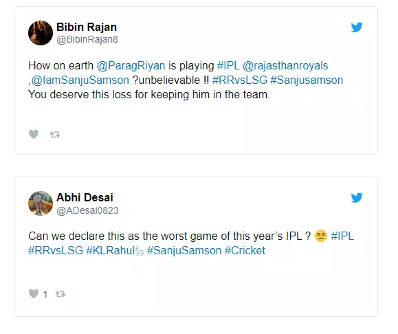 |ജയിക്കാവുന്ന കളി തോറ്റത് ഇരുവരുടെയും 'മിടുക്ക്' കൊണ്ടാണെന്ന് രാജസ്ഥാൻ ആരാധകർ കുറ്റപ്പെടുത്തുന്നു.