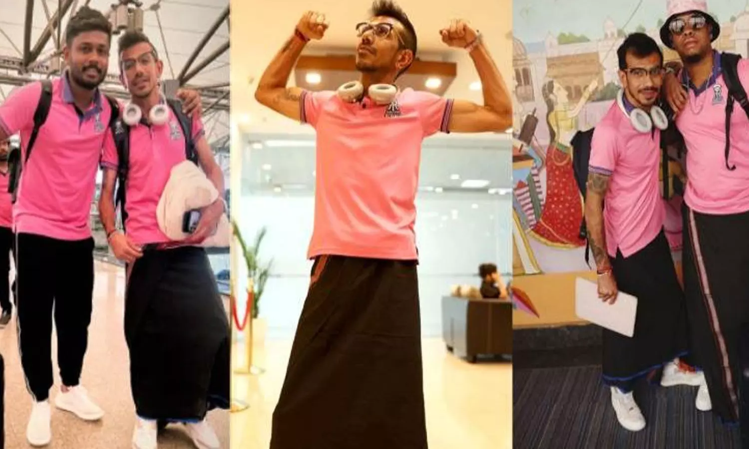 ചഹലിനെ മുണ്ടുടുപ്പിച്ച് സഞ്ജു; 'കീലേരി ചഹൽ' മാസ് ലുക്കിലെന്ന് സോഷ്യൽ മീഡിയ