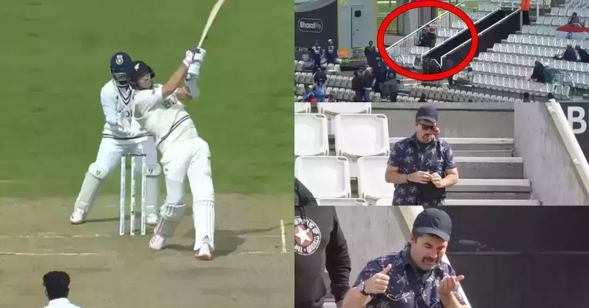 |മത്സരത്തിന്റെ അഞ്ചാം ദിനത്തിലായിരുന്നു ന്യൂസിലാൻഡ് ആരാധകന്റെ മുഖത്ത് നിന്ന് ചോരയൊലിപ്പിച്ച സിക്സർ വന്നത്