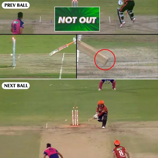 |ഹൈദരാബാദ്: സൺറൈസേഴ്സ് ഹൈദരാബാദും രാജസ്ഥാൻ റോയൽസും തമ്മിലുള്ള മത്സരത്തിലെ അമ്പയറിങ്ങിനെച്ചൊല്ലി വിവാദം. മത്സരത്തിന്റെ 14.3 ഓവറിൽ സൺറൈസേഴ്സിന്റെ ട്രാവിഡ് ഹെഡിനെ രാജസ്ഥാൻ വിക്കറ്റ് കീപ്പർ സഞ്ജു സാംസൺ വിദഗ്ധമായി റൺ ഔട്ടാക്കിയെങ്കിലും അമ്പയർ അനുവദിച്ചില്ല.