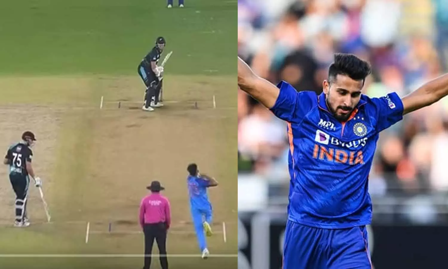 അതിൽ രണ്ട് വിക്കറ്റും വീഴ്ത്തി. വേഗം കൊണ്ട് ഇതിനകം തന്നെ ഉംറാൻ മാലിക് ഞെട്ടിച്ചുകളഞ്ഞതാണ്. അത്തരത്തിലൊരു പന്ത് കഴിഞ്ഞ കളിയിലും വന്നു. ഇന്നിങ്സിന്റെ 4ാം ഓവറിലെ രണ്ടാം പന്തായിരുന്നു മാലികിന്റെ വേഗത ഒന്നുകൂടി തെളിയിച്ചത്. ബ്രേസ്വെലായിരുന്നു ക്രീസിൽ. ഉംറാനെ ഉയർത്തിയടിക്കാനുള്ള ബ്രേസ്വെലിന്റെ ശ്രമം പാളി. പന്ത് സ്റ്റമ്പ് ഇളക്കിയപ്പോൾ ബേൽസ് കീപ്പറെയും മറികടന്ന് പോയി. ഇതിന്റെ വീഡിയോ സമൂഹമാധ്യമങ്ങളില് വൈറലായി.
