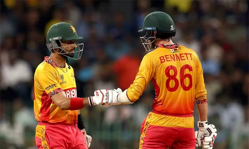 |കൊളംബോ: ടി20 ലോകകപ്പിലെ അവസാന ഗ്രൂപ്പ് മത്സരത്തിൽ ശ്രീലങ്കയെ ആറ് വിക്കറ്റ് വീഴ്ത്തി സിംബാബ്വെ. ഓസീസും ശ്രീലങ്കയും അയർലണ്ടും അടങ്ങിയ ഗ്രൂപ്പിലെ ചാമ്പ്യന്മാരായാണ് ആഫ്രിക്കൻ രാജ്യം സൂപ്പർ എട്ടിലേക്ക് മുന്നേറുന്നത്. ലങ്ക ഉയർത്തിയ 179 റൺസ് പിന്തുടർന്ന സിംബാബ്വെ അവസാന ഓവറിലാണ് ലക്ഷ്യം മറികടന്നത്. 48 പന്തിൽ 60 റൺസെടുത്ത ബ്രയാൻ ബെന്നറ്റ്, 26 പന്തിൽ 45റൺസെടുത്ത സിക്കന്തർ റാസ എന്നിവരാണ് സിംബാബ്വെൻ ജയം എളുപ്പമാക്കിയത്.