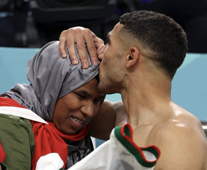 After Morocco's win against Belgium, Achraf Hakimi went to his mother, gave her his shirt and kissed her on her forehead. pic.twitter.com/0fSuVCcfII