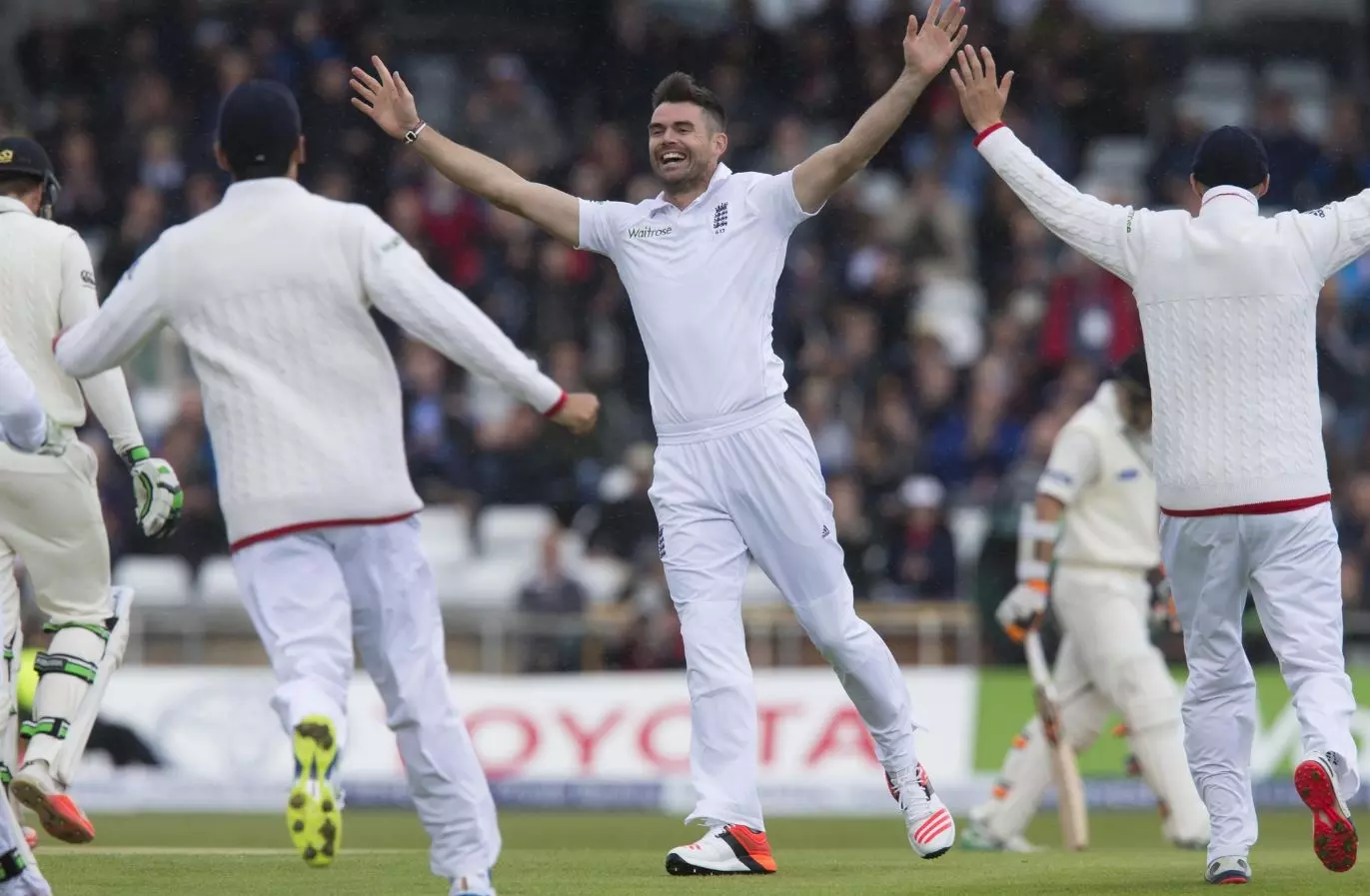 ഇന്ത്യൻ മുൻനിരയെയും വാലറ്റത്തെയും ഒരുപോലെ ചുരുട്ടിക്കൂട്ടുകയായിരുന്നു ജിമ്മി ആൻഡേഴ്സൻ. മൂന്ന് മുൻനിര വിക്കറ്റുകളും രണ്ടു വാലറ്റക്കാരെയുമടക്കം കരിയറിലെ 30-ാമത്തെ അഞ്ചുവിക്കറ്റ് നേട്ടമാണ് ആൻഡേഴ്സൻ ഇന്നു സ്വന്തമാക്കിയത്. റോബിൻസനും വുഡും രണ്ടു വീതവും മോയിൻ അലി ഒന്നും വിക്കറ്റുകൾ നേടി.