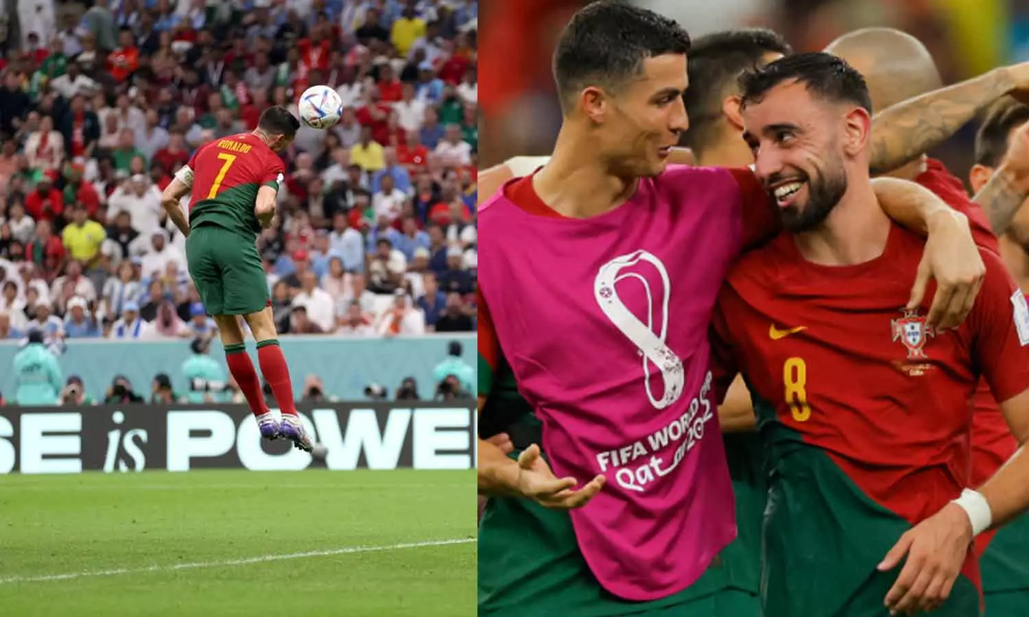 ബോക്സിലേക്ക് ഉയർത്തിയ പന്തിനായി ക്രിസ്റ്റ്യാനോയും ചാടിയിരുന്നു. പന്ത് തലയിലുരുമ്മിയെന്ന കണക്ക്കൂട്ടലിലാകാം ക്രിസ്റ്റ്യാനോ ആഘാഷം തുടങ്ങിയതും. ഫിഫയടക്കം ആ ഗോൾ ക്രിസ്റ്റ്യാനോ റൊണാൾഡോയുടെ പേരിലായിരുന്നു രേഖപ്പെടുത്തിയത്. എന്നാൽ പന്ത് ക്രിസ്റ്റ്യാനോയുടെ തലയിൽ തൊട്ടില്ലെന്ന് വ്യക്തമായതോടെ ഗോളവകാശി ബ്രൂണോയായി.