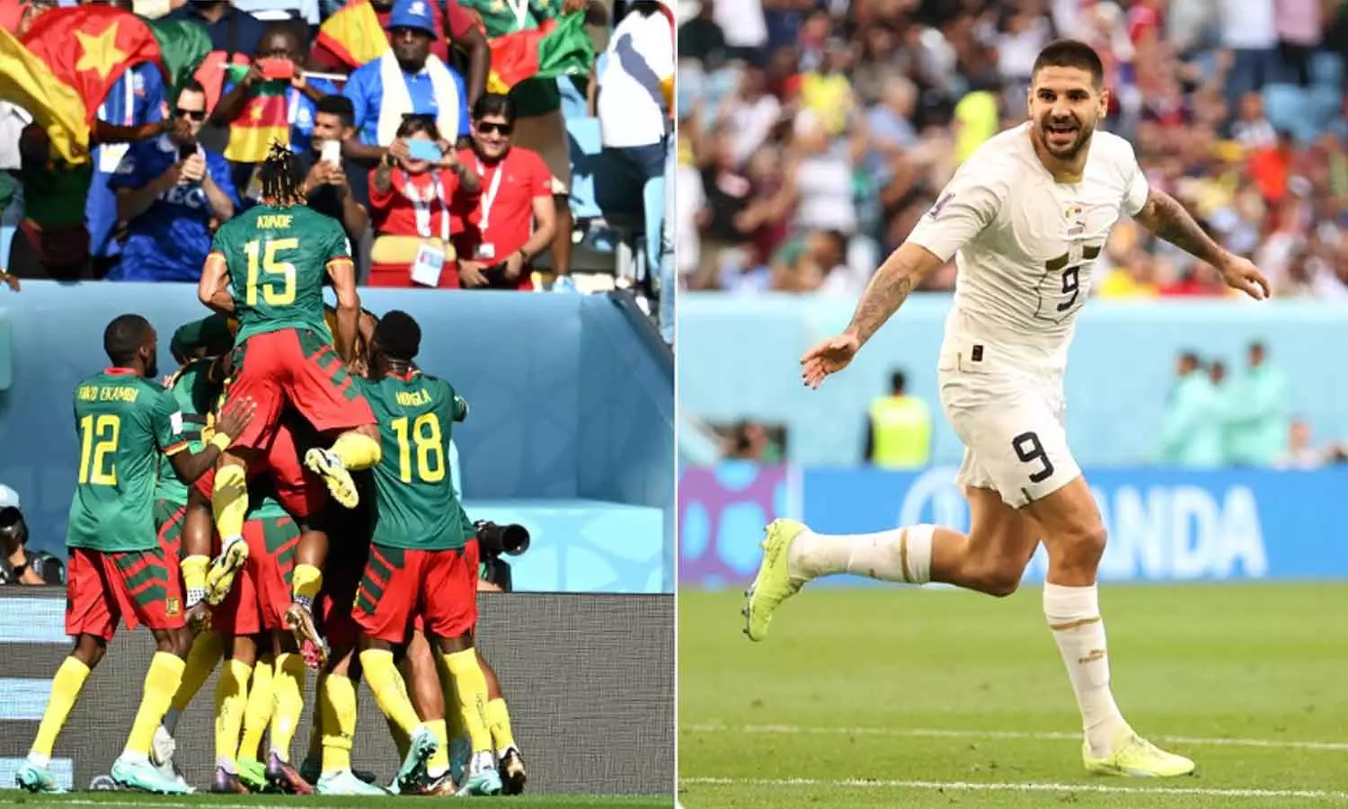 ദോഹ: ഇരുടീമുകളും മത്സരിച്ച് ഗോളടിച്ച മത്സരത്തിൽ കരുത്തരായ സെർബിയയെ കാമറൂൺ സമനിലയിൽ തളച്ചു. ആറ് ഗോളുകൾ പിറന്ന മത്സരത്തിൽ ഇരു ടീമുകളും മൂന്ന് ഗോളുകൾ വീതം നേടി. ഗ്രൂപ്പ് ജിയിൽ ഇരു ടീമുകൾക്കും നിർണായകമായ മത്സരത്തിൽ 28-ാം മിനിറ്റിൽ കാസില്ലെറ്റോ അടിച്ച ഗോളിലൂടെ മുന്നിലെത്തിയത് കാമറൂണാണ്. എന്നാൽ മൂന്ന് ഗോളുകൾ തിരിച്ചടിച്ച് സെർബിയ മത്സരത്തിൽ ആധിപത്യം നേടി.