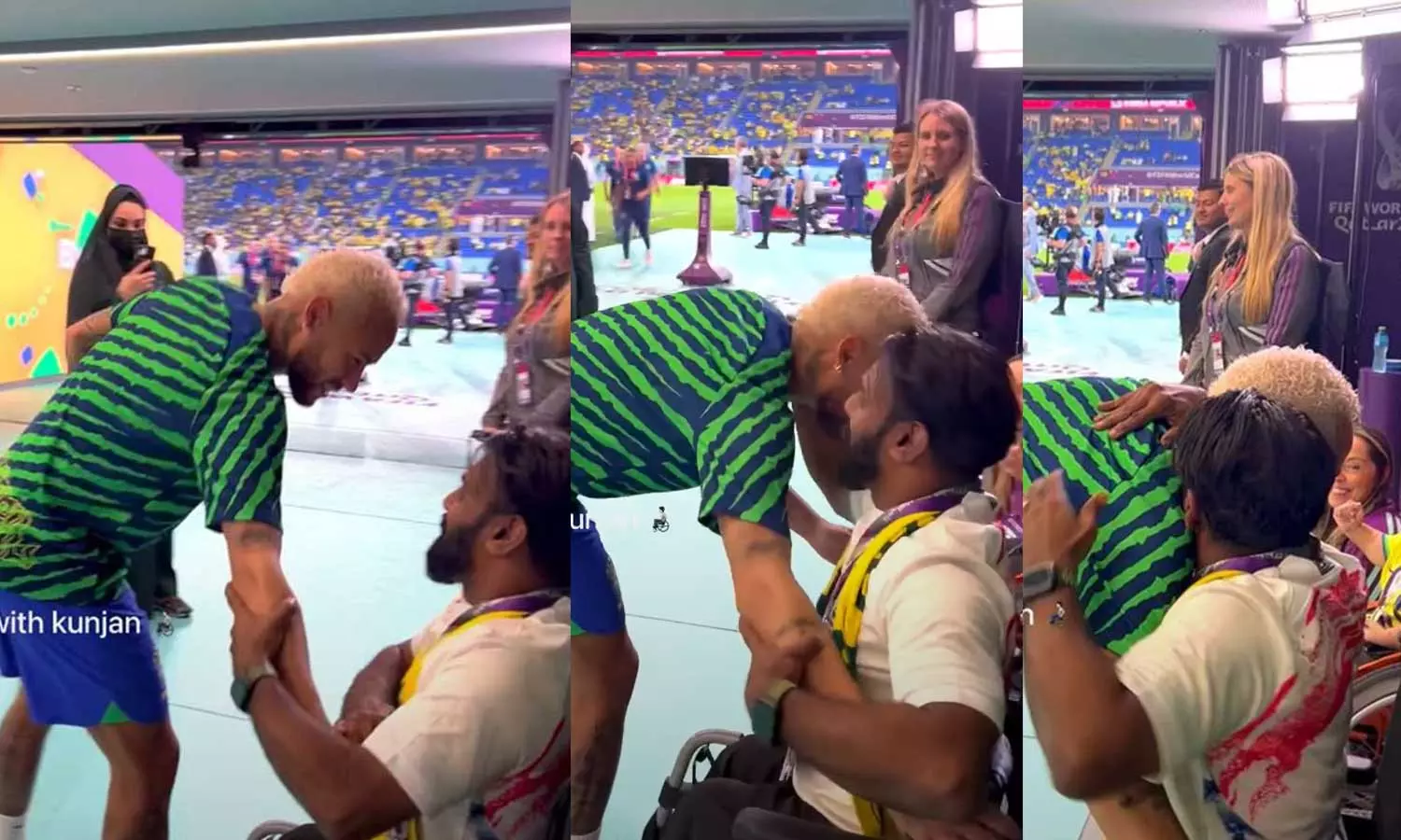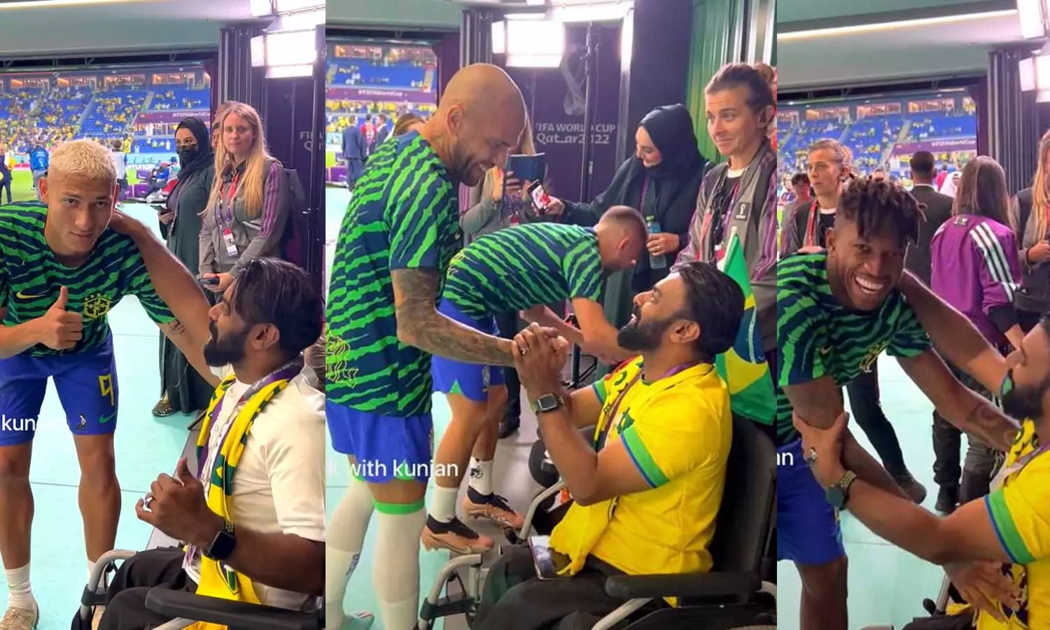 പ്രീക്വാർട്ടറിൽ ബ്രസീൽ-ദക്ഷിണ കൊറിയ മത്സരത്തിനുതൊട്ടുമുൻപ് ഗ്രൗണ്ടിൽ പരിശീലനം കഴിഞ്ഞ് ടണൽവഴി താരങ്ങൾ ഡ്രെസിങ് റൂമിലേക്ക് മടങ്ങുമ്പോഴായിരുന്നു സംഭവം. ഭിന്നശേഷിക്കാർക്കായി താരങ്ങളെ നേരിൽകാണാൻ ഇവിടെ പ്രത്യേക സൗകര്യമൊരുക്കിയിരുന്നു. ഈ സമയത്താണ് താരങ്ങളെ കാണാനുള്ള അപൂർവഭാഗ്യം ലഭിച്ചത്. ബ്രസീൽ താരങ്ങളായ ആൽവസ്, റിച്ചാലിസൻ, ഫ്രെഡ്, ആന്റണി, റോഡ്രിഗോ, മാർക്വിനോസ്, മിൽറ്റാവു എന്നിവരെല്ലാം വന്ന് കൈകൊടുക്കുകയും കെട്ടിപ്പിടിക്കുകയും ചെയ്തു.
