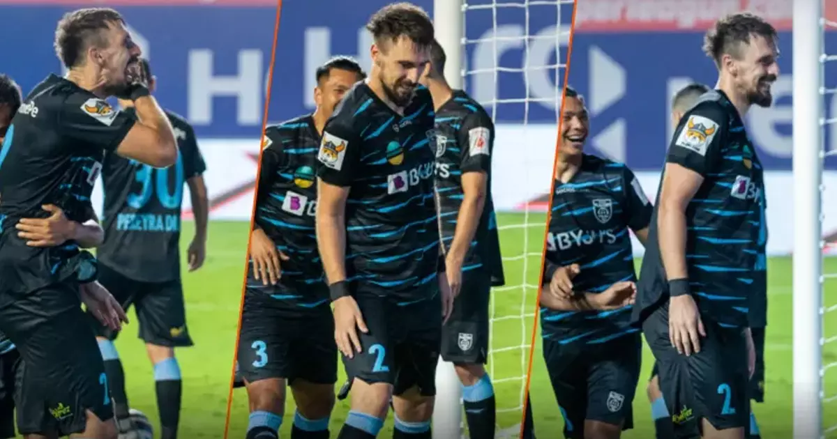 Allu Arjun's 'Pushpa' style celebration of Bosnian player Enas Sipovic, who brought Kerala Blasters back to winning ways in the ISL and scored the goal against East Bengal.