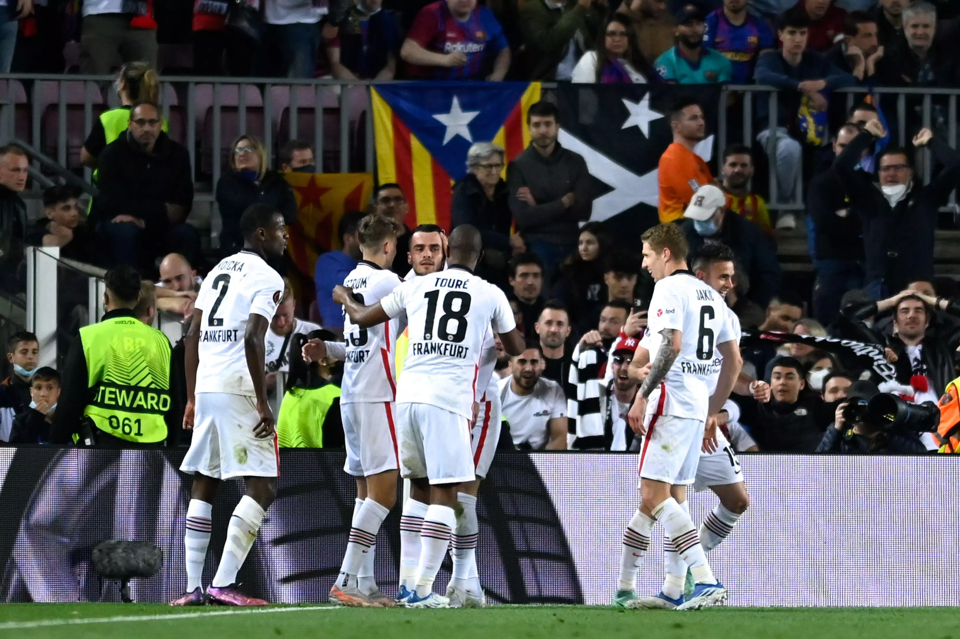 ബാഴ്സക്കെതിരെ കൃത്യമായ കണക്കുകൂട്ടലുമായെത്തിയ ഫ്രാങ്ക്ഫർട്ട് മത്സരത്തിന്റെ മൂന്നാം മിനുട്ടിൽ തന്നെ മുന്നിലെത്തി. സെറ്റ്പീസിനിടെ ഫ്രാങ്ക്ഫർട്ട് താരത്തെ ബാഴ്സ ഡിഫന്റർ എറിക് ഗാർസ്യ വീഴ്ത്തിയപ്പോൾ റഫറി പെനാൽട്ടി അനുവദിച്ചു. കിക്കെടുത്ത ഫിലിപ് കോസ്റ്റിച്ചിന് പിഴച്ചില്ല.