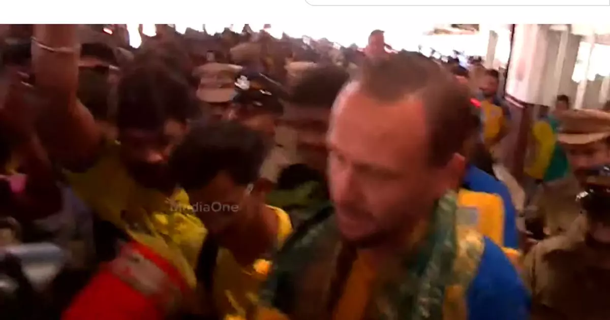 ഇവാൻ വുകുമനോവിചിനെ നെടുമ്പാശ്ശേരി വിമാനത്താവളത്തിൽ ബ്ലാസ്റ്റേഴ്സ് ആരാധകർ സ്വീകരിക്കുന്നു