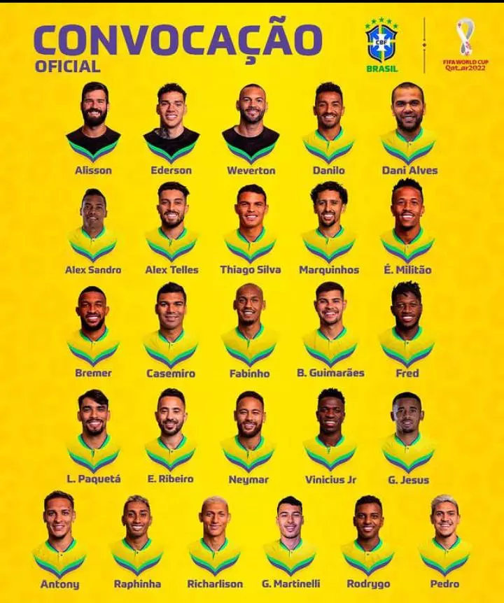 ആന്റണി, ഗബ്രിയൽ ജീസുസ്, ഗബ്രിയൽ മാർട്ടിനല്ലി, നെയ്മർ, പെഡ്രോ, റഫീന, റിച്ചാലിസൺ, റോഡ്രിഗോ, വിനീഷ്യസ് ജൂനിയർ.