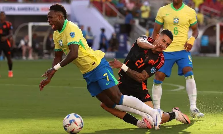കാലിഫോർണിയയിലെ ലിവൈസ് സ്റ്റേഡിയത്തിൽ ഗ്രൂപ്പ് ഡിയിലെ നിർണായക മത്സരത്തിൽ കൊളംബിയയും ബ്രസീലും ഏറ്റുമുട്ടുന്നു. വിജയിക്കുന്നവർ ഗ്രൂപ്പ് ചാമ്പ്യൻമാരാകും. അങ്ങനെ കാത്തിരുന്ന പോരിന് അരങ്ങൊരുങ്ങി. 12ാം മിനുറ്റിൽ റാഫീഞ്ഞ്യയുടെ സുന്ദരമായ ഫ്രീകിക്ക് ഗോളിൽ ബ്രസീൽ മുന്നിലെത്തുന്നു. മത്സരത്തിലേക്ക് തിരിച്ചുവരാൻ കൊളംബിയ ശ്രമിച്ചുകൊണ്ടിരിക്കവേയാണ് 42ാം മിനുറ്റിൽ അത് സംഭവിക്കുന്നത്. കൊളംബിയൻ ബോക്സിലേക്ക് ഓടിക്കയറിയ വിനീഷ്യസിനെ കൊളംബിയൻ ഡിഫൻഡർ ഡാനിയൽ മുനോസ് വീഴ്ത്തുന്നു. ഒറ്റ നോട്ടത്തിൽ തന്നെ ക്ലിയർ പെനൽറ്റി.