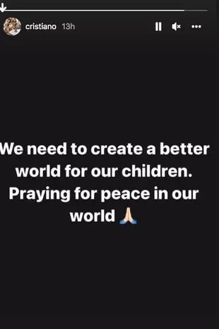 യുക്രൈന് വിഷയത്തിൽ ഒരു പക്ഷവും ചേരാതെയാണ് റൊണാൾഡോ പ്രതികരണം അറിയിച്ചത്. "നമ്മളുടെ മക്കൾക്കായി മികച്ചൊരു ലോകം പണിയേണ്ടതുണ്ട്. ലോകത്ത് സമാധാനം പുലരാൻ പ്രാർത്ഥിക്കുന്നു." തന്റെ ഇൻസ്റ്റഗ്രാം സ്റ്റോറിയിൽ ക്രിസ്റ്റ്യാനോ റൊണാൾഡോ കുറിച്ചു.