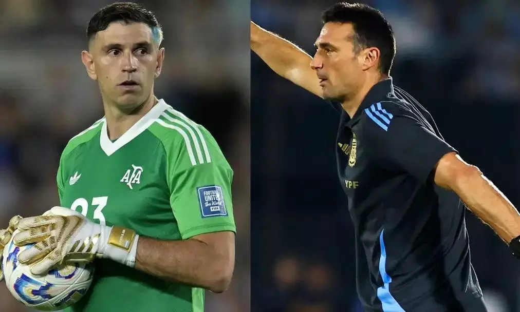 ബ്രസീലിനെ പുച്ഛിക്കാനൊരുങ്ങി എമിലിയാനോ മാർട്ടിനസ്; അരുതെന്ന് പറഞ്ഞ് സ്കലോണി VIDEO